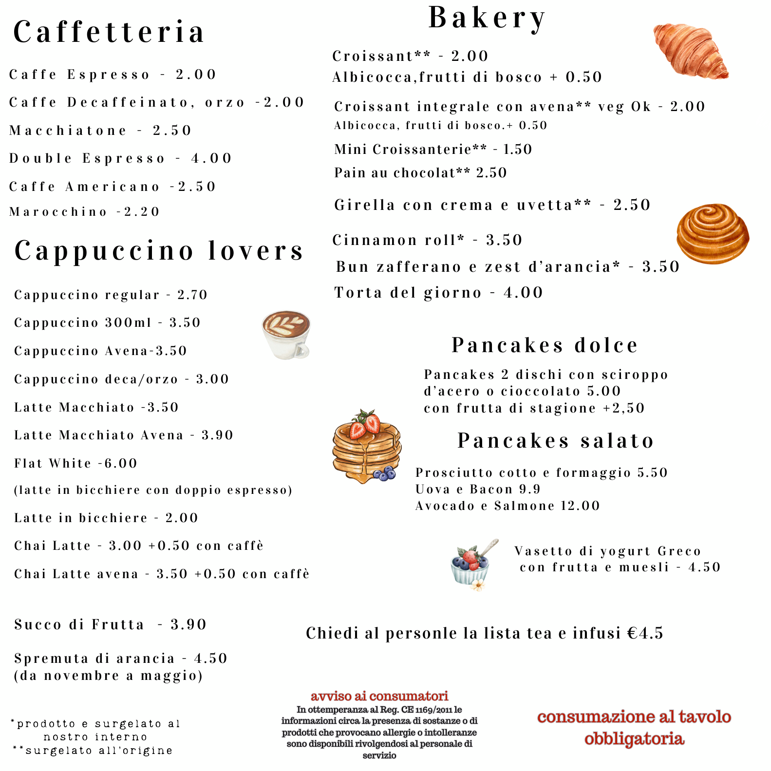 Delizia il tuo palato con le nostre torte artigianali, i profumati cinnamon rolls, i soffici pancake, il muesli perfetto per accompagnare lo yogurt e il nostro delizioso shokupan, ideale per un brunch indimenticabile. Ogni morso è un viaggio nel gusto!"